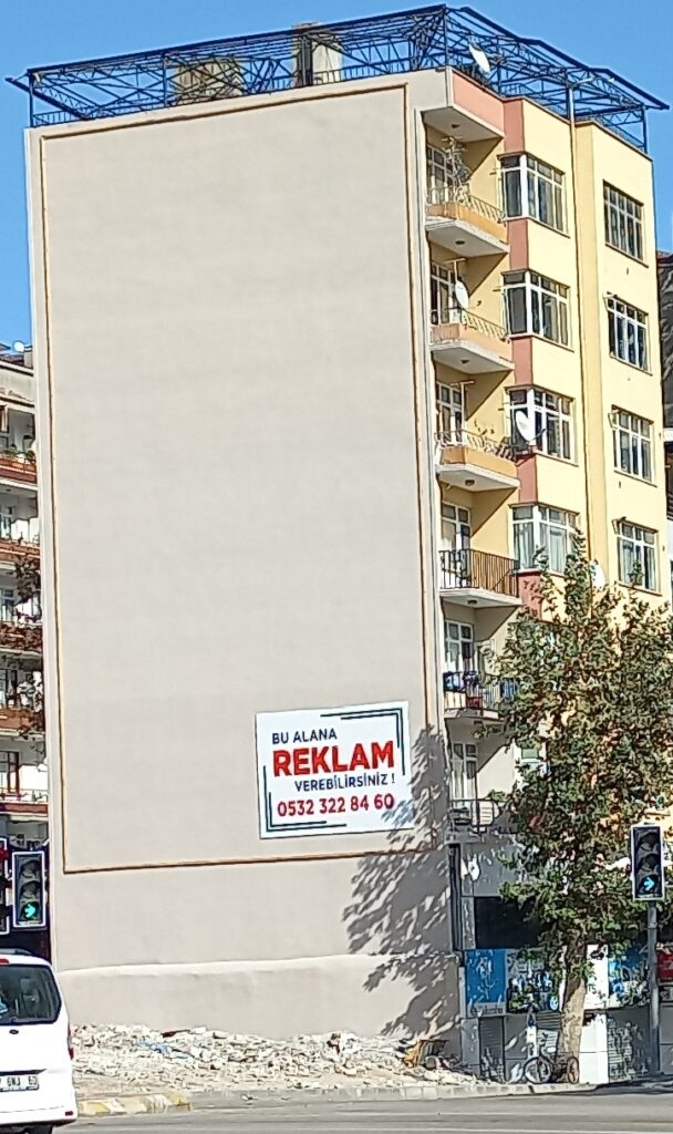 Bu binadaki afişin üzerindeki telefon numarası kimin bilemiyoruz ama bu tür pazarlamalar oldukça önem teşkil eder. Çok önemli kaynak elde edilebilir, “ALAN RAZI SATAN RAZI” mantığı bu reklam için “CUK” oturuyor. Biz bu duvar reklam işinin oldukça yaygınlaşacağını hatta profesyonel ellerde çok daha iyi olacak düşüncesi olanlardan olduğumuzu da belirtmek isteriz.
