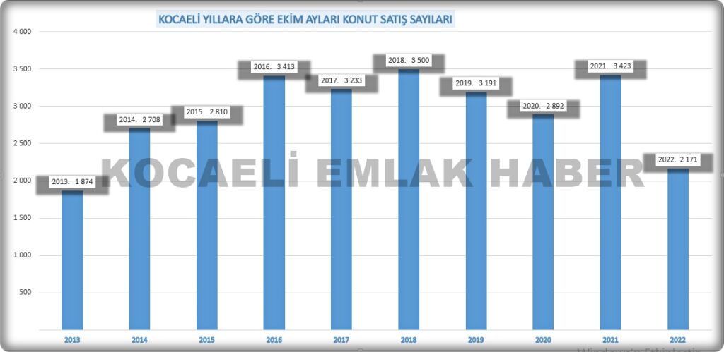 Ekim 2022 konut satış istatistikleri açıklandı. Türkiye genelinde satışlar çok hızlı düştü. Özellikle ipotekli satışlar dibe vurdu. Dibe vuran sadece ipotekli satışlar değil, Kocaeli konut satışları da son 9 yılın en kötü ekim Kocaeli konut satışlarını gördük. 2022 Ekim ayında Kocaeli’nde konut satışı sadece ve sadece 2.171 olarak gerçekleşti.